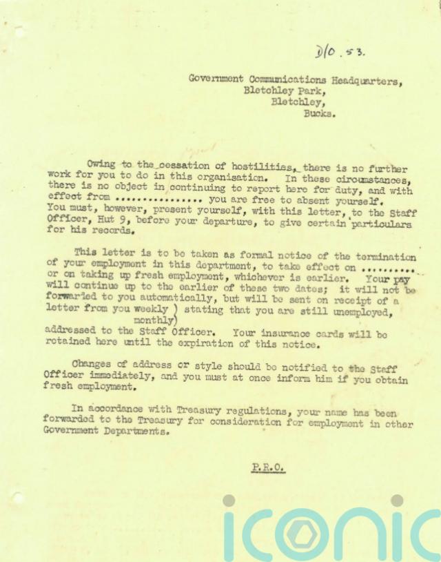 A first letter dated August 12 1945 was sent to staff at GCHQ’s wartime headquarters, Bletchley Park, days before VJ Day was declared on August 15.