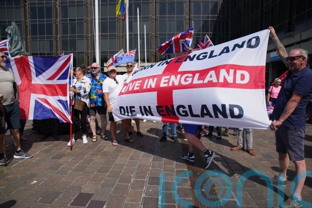 One protester tied a large flag of St George to the balcony which had on it the words “Born in England, Live in England, Die in England”.