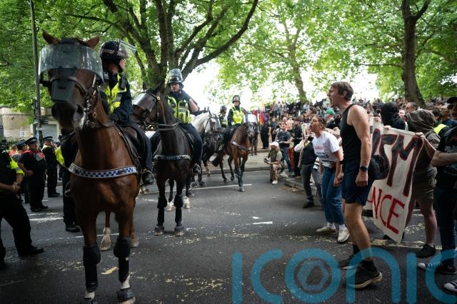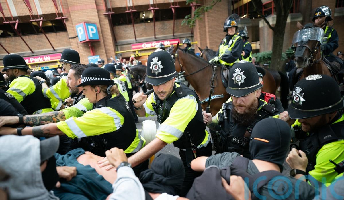 In Bristol, mounted police were brought in to separate rival groups in the Castle Park, with officers scuffling with protesters.