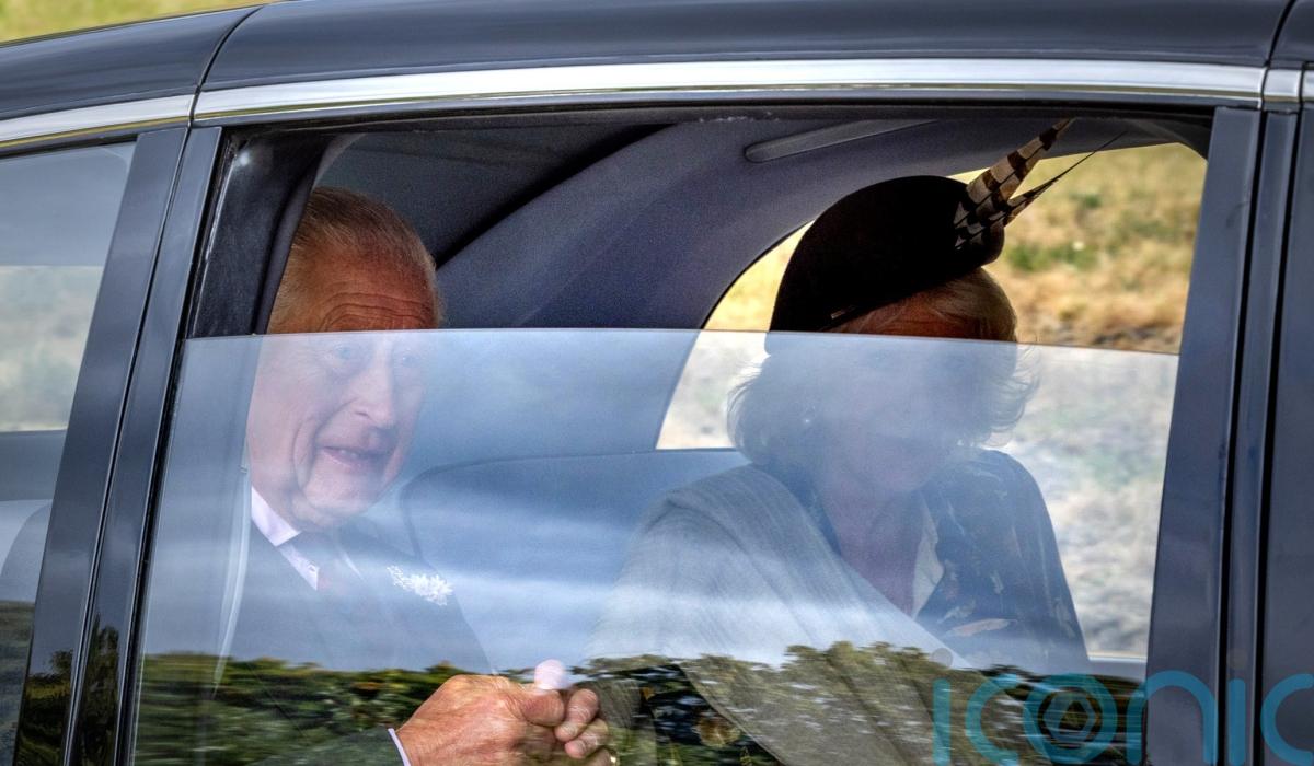 Charles and Camilla were pictured in the back seats of a car arriving at Crathie Kirk, Crathie, Aberdeenshire.