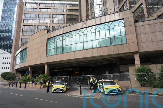 At Canary Wharf, police officers stood at the entrance to the Britannia Hotel while security guards could also be seen standing behind full length barriers that blocked off the entrance way.