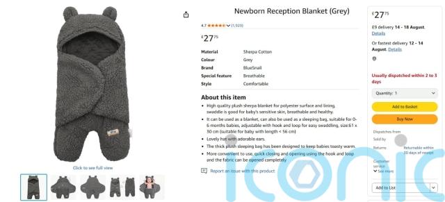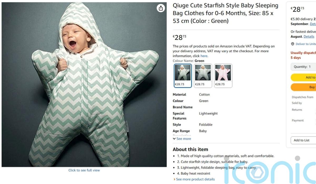 Which? also found a sack-style sleeping bag listing on eBay which showed a baby being “positively swamped” by the item.