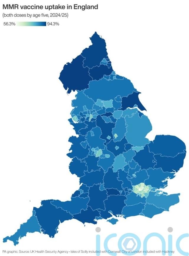 Some 91.9% of five-year-olds received one dose of the MMR vaccine, unchanged from 2023/24 and the lowest level since 2010/11, according to the UK Health Security Agency (UKHSA).