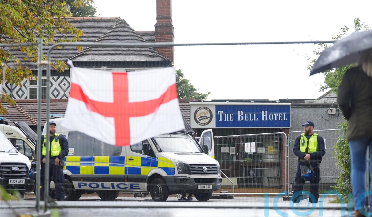A small number of demonstrators carried St George and Union flags while police officers guarded the hotel entrance – which is gated off with metal fencing.