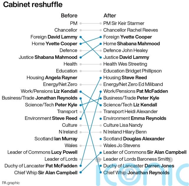 Yvette Cooper was replaced as Home Secretary by Shabana Mahmood and took over as Foreign Secretary from David Lammy, who has been made Deputy Prime Minister and Justice Secretary.