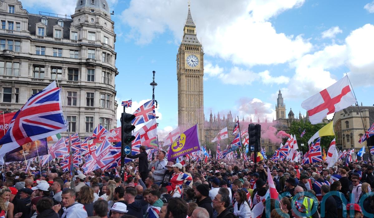 A stage was set up to hear a series of speeches from far-right personalities and politicians and included an interview between Robinson and Musk, who accorded with the overriding theme of the day by proclaiming the “destruction of Britain” because of “massive uncontrolled migration”.