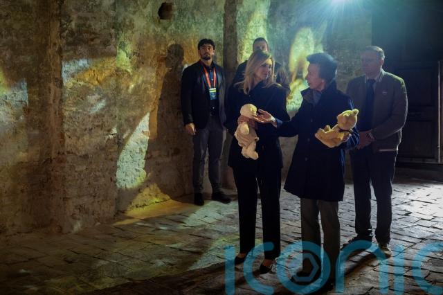 The King’s sister travelled to the war-torn country on Tuesday, where she left a teddy at a children’s memorial in a poignant tribute to youngsters killed in the conflict, saying her daughter Zara Tindall had the same bear.