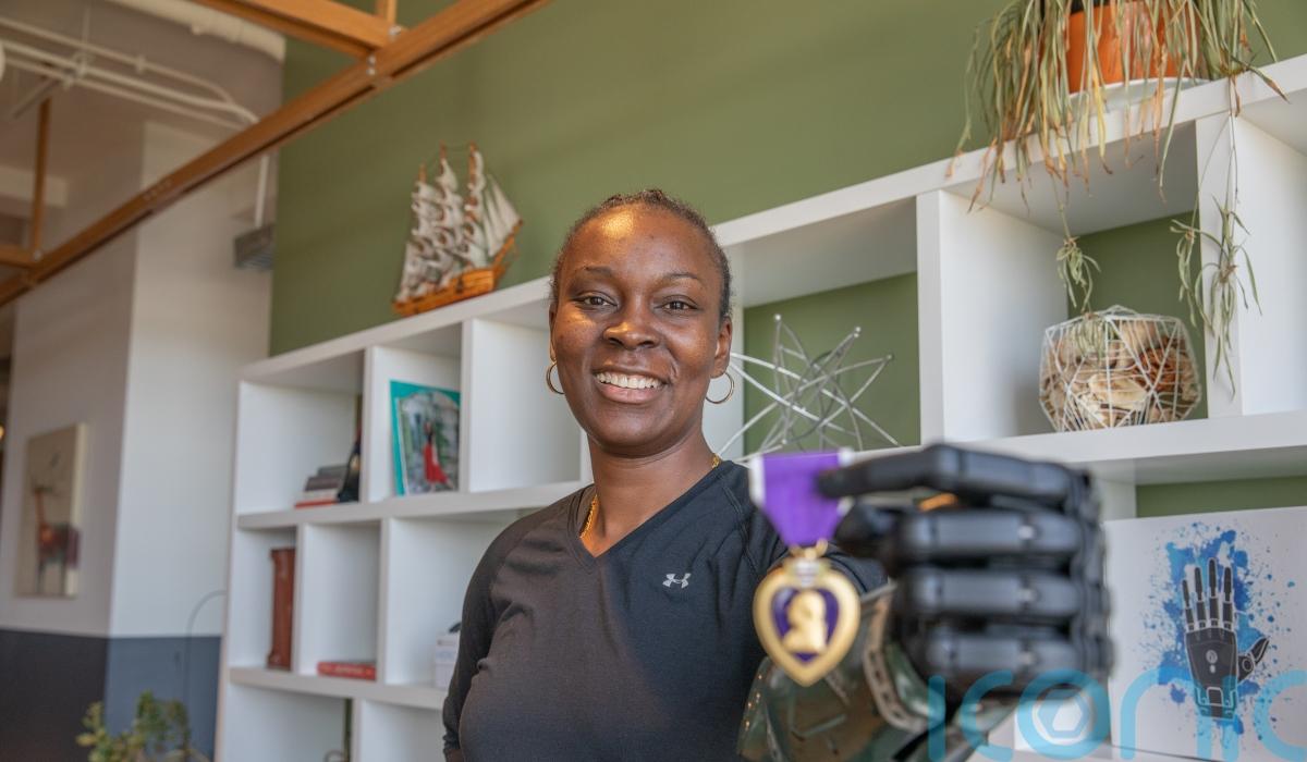 The recipient of a Purple Heart medal, presented to those wounded or killed in service, said that her new prosthetic arm – produced by Bristol-based Open Bionics – “makes me feel whole”.