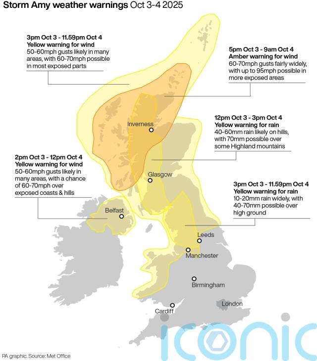 The north and west of Scotland will be worst hit by the storm with a Met Office amber warning for “damaging winds” in place from 5pm on Friday until 9am Saturday.