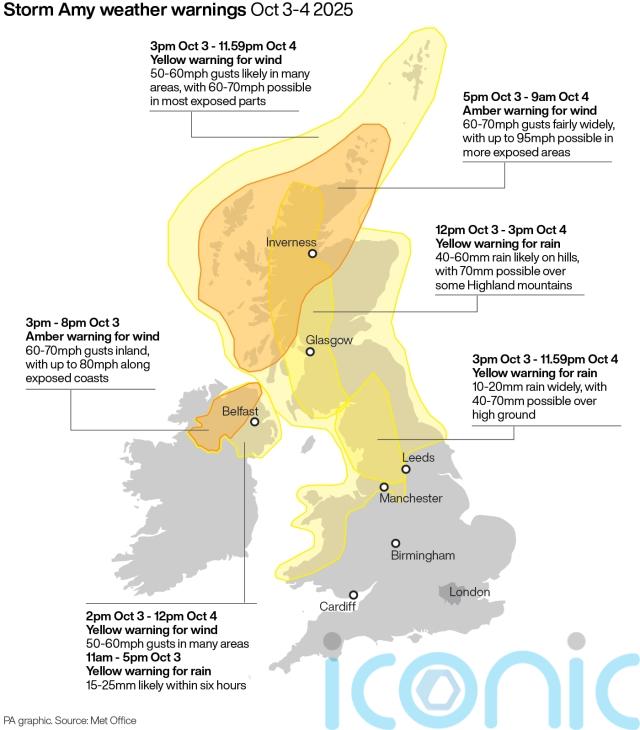 The north and west of Scotland will be worst hit by the storm on the British mainland, with a Met Office amber warning for “damaging winds” in place from 5pm on Friday until 9am on Saturday.