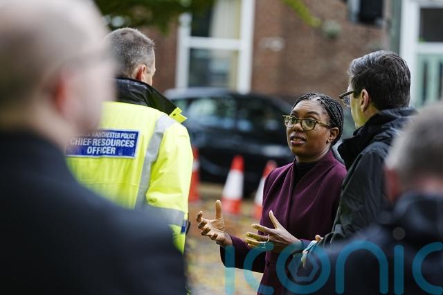 Conservative Party leader Kemi Badenoch was joined by Greater Manchester Mayor Andy Burnham and Assistant Chief Constable John Webster as she visited the synagogue on Saturday.