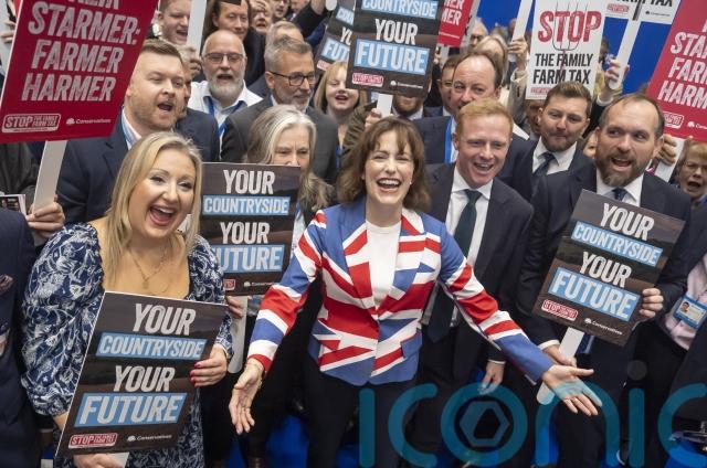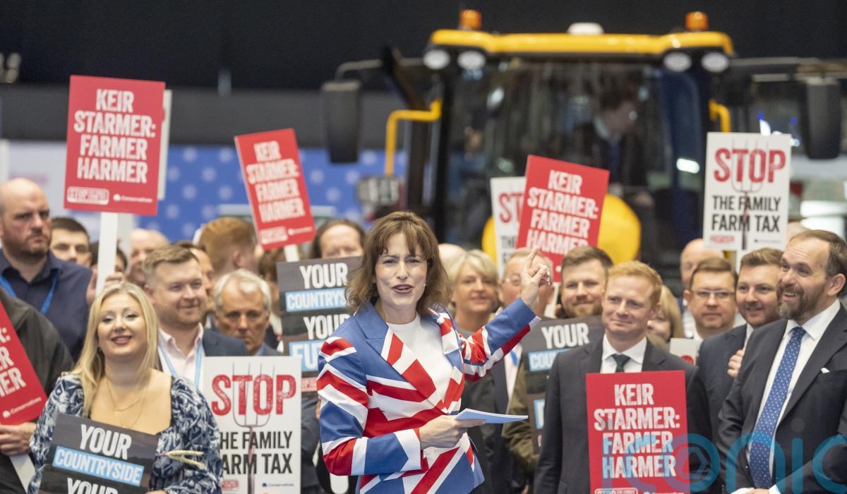 Ms Atkins, wearing a Union flag blazer and stood in front of a JCB tractor, told the impromptu rally at the party’s conference in Manchester that Labour’s policies had caused anguish to farmers and their families.