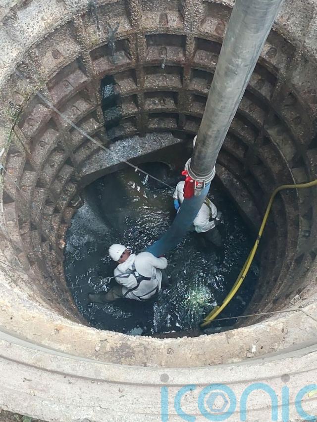 The team had to access the sewer through a large manhole chamber, equipped with gas monitors for safety, before blasting, chiselling and sucking the blockage out from along 125 metres of pipes.