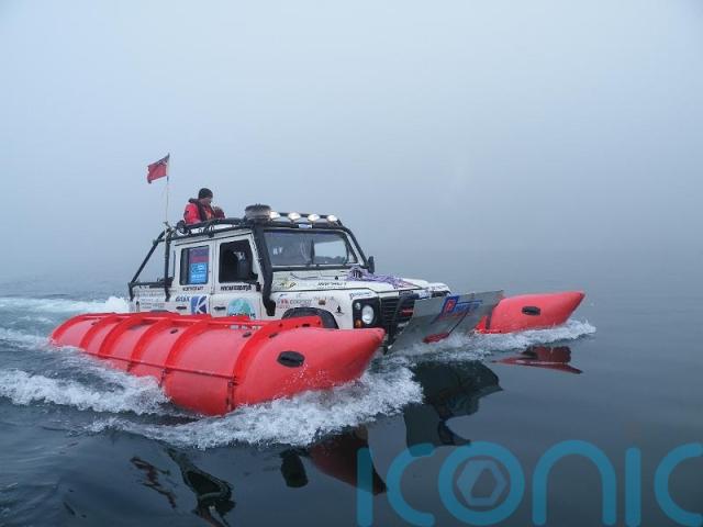 The 4×4 had a propeller and two large red floats added to it to successfully complete the crossing in 2008.