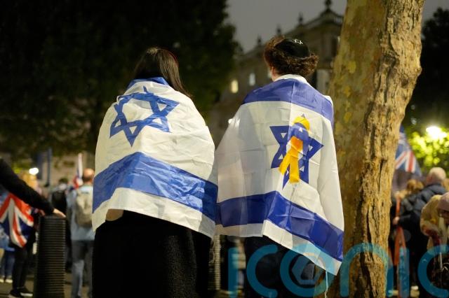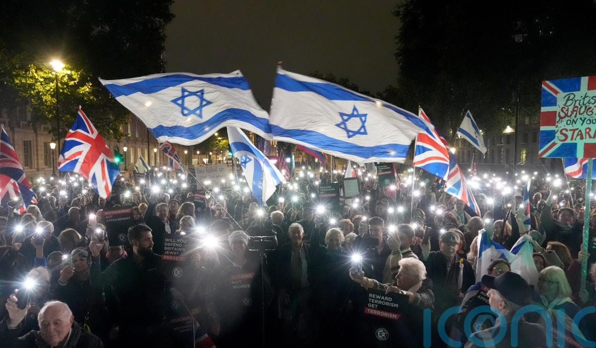 The Metropolitan Police said the Campaign Against Antisemitism protest, which saw about 2,000 people gather bearing Israeli and Union flags and holding their phone lights in the air, took place largely without incident before dispersing.