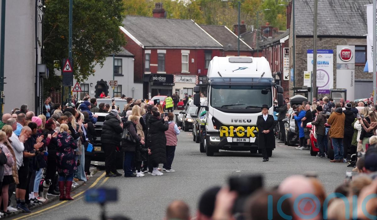 The cortege arrived at the Cheshire Cheese pub – Hatton’s local – on Stockport Road in Hyde and was met with applause from mourners before it departed at 9.45am.