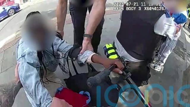 In bodyworn footage shown to the hearing, Ms Agyemang tells Mr Lathwood, “can you get off my arm”, “I haven’t done anything” and “get off me”, before she begins shouting: “Can you get off me? This man is hurting me.”