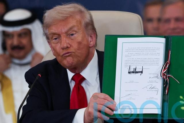 The agreement was signed by Mr Trump at a ceremony in Sharm El Sheikh, along with negotiators from Egypt, Qatar and Turkey.