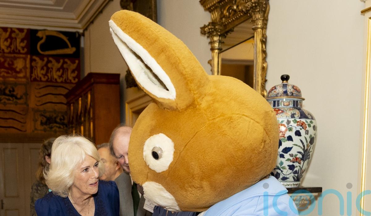 The Queen met Peter Rabbit as she wished the UK’s largest children’s reading charity a “happy 100th birthday”.