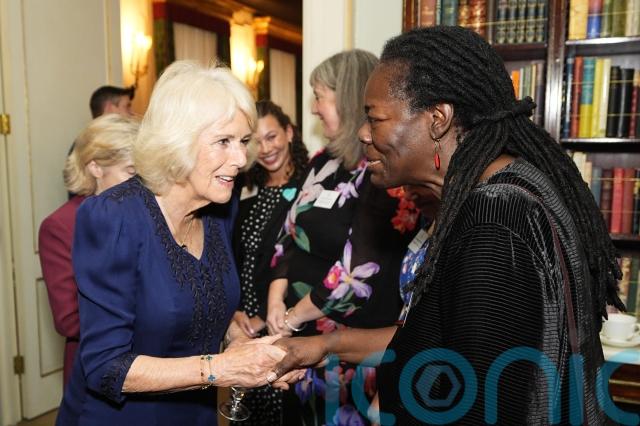 Camilla met authors and supporters of BookTrust including the charity’s president Sir Michael Morpurgo, Dame Floella Benjamin and Richard Osman at a reception at Clarence House on Tuesday.