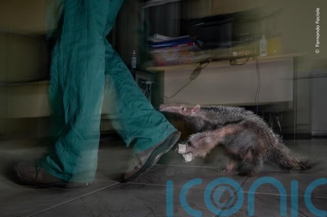This year it was won by Brazilian Fernando Faciole for his image spotlighting an orphaned giant anteater pup following its human caregiver, after an evening feed at a rehabilitation centre. Its mother had been killed by a vehicle.