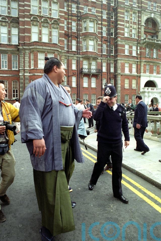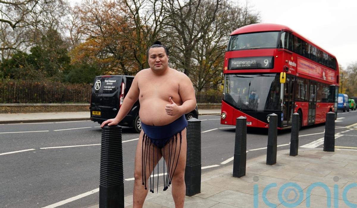Sharing a photo on X of two wrestlers stuffed into the back of a taxi, Mr Suzuki said: “Black cab is full with just two Yokozuna (Grand Champion)”.