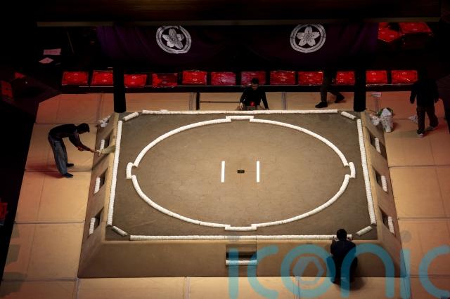 Later on Wednesday a gyoji, who referees the bouts, was pictured blessing the sumo ring at the Royal Albert Hall.