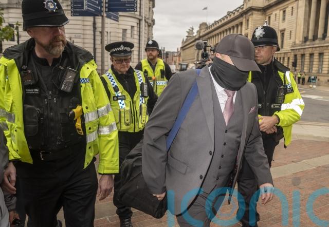 Bush, formerly of Kirk Ella, East Yorkshire, but now of Otley, West Yorkshire, arrived at court wearing a black baseball cap and scarf covering his face, and left flanked by at least 10 police officers.