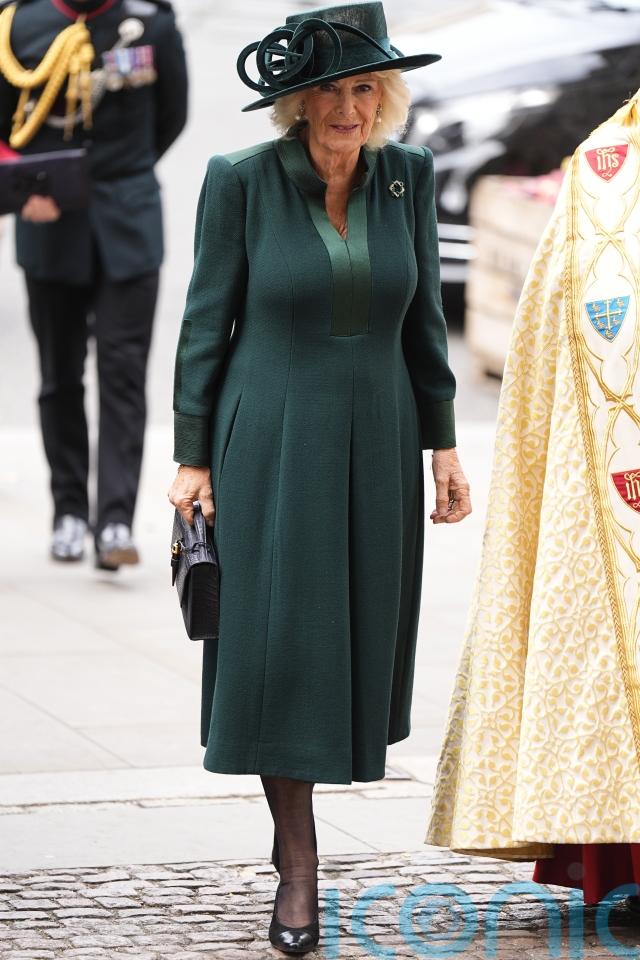 Camilla was all smiles as she arrived at the church which was decorated with floral and fresh food displays.