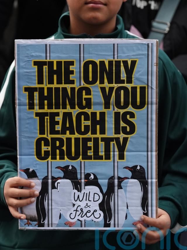 Musician-turned-environmentalist Feargal Sharkey, who attended the protest, accused the company of exploiting the birds for profit – and dared the new Merlin Entertainments chief executive Fiona Eastwood to “swap places with the penguins”.