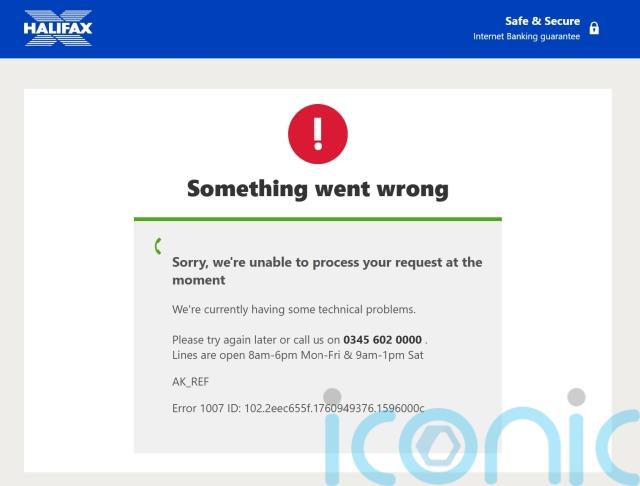 An error message posted on Halifax’s website read: “Sorry, we’re unable to process your request at the moment. We’re currently having some technical problems.”