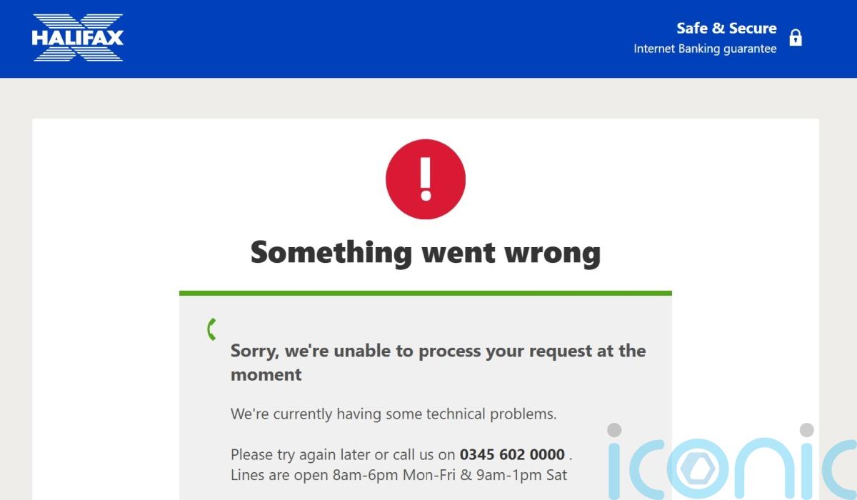 An error message posted on Halifax’s website read: “Sorry, we’re unable to process your request at the moment. We’re currently having some technical problems.”