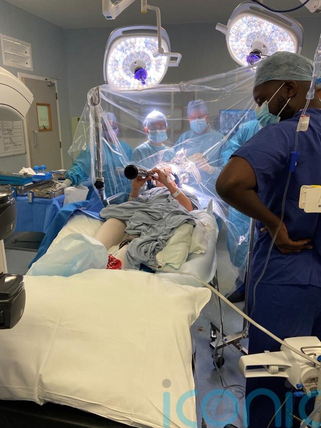 Ms Bacon, who played clarinet in the East Grinsted Concert Band until she had to stop five years ago due to her Parkinson’s symptoms, was given a local anaesthetic to numb her scalp and skull.
