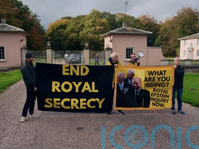 Protesters from the anti-monarchy group unveiled banners reading “End Royal Secrecy” and “What are you hiding? Royal Epstein Inquiry Now” outside the gates of Royal Lodge.