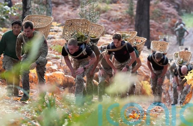 Participants attempted to carry a traditional Nepalese basket, or “Doko”, weighing 15kg on their back over a five-kilometre (3.1-mile) uphill course at Army Training Centre Pirbright on Tuesday.
