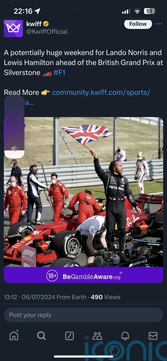 A post on Kwiff’s X account, seen in July, featured text stating: “A potentially huge weekend for Sir Lewis Hamilton ahead of the British Grand Prix at Silverstone #F1.”