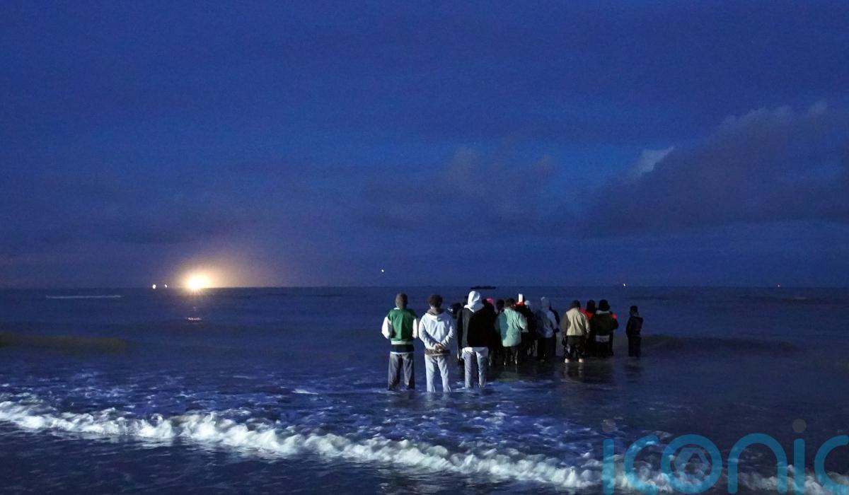A group of migrants was seen boarding a small boat towards the UK on Gravelines beach in northern France at first light on Wednesday.