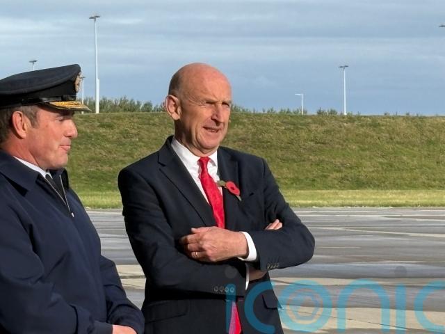 John Healey spoke alongside his German counterpart Boris Pistorius at RAF Lossiemouth in Moray, after flying onboard a P-8 Poseidon submarine-hunting aircraft.