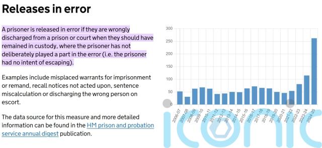 A report by His Majesty’s Prison and Probation Service (HMPPS) said 262 prisoners were released in error from April 2024 to March 2025, up from 115 in the year to March 2024.