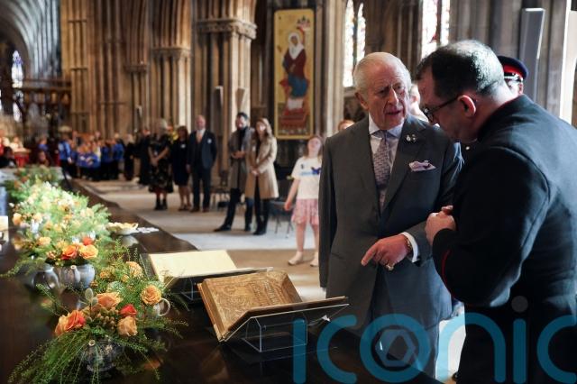 Inside the cathedral, Charles was serenaded by a choir as he made time to speak to members of dozens of community groups, including representatives from the city’s foodbank and Liberty Jamboree, which supports young people with learning or physical disabilities, and volunteers from the cathedral’s embroiderers.