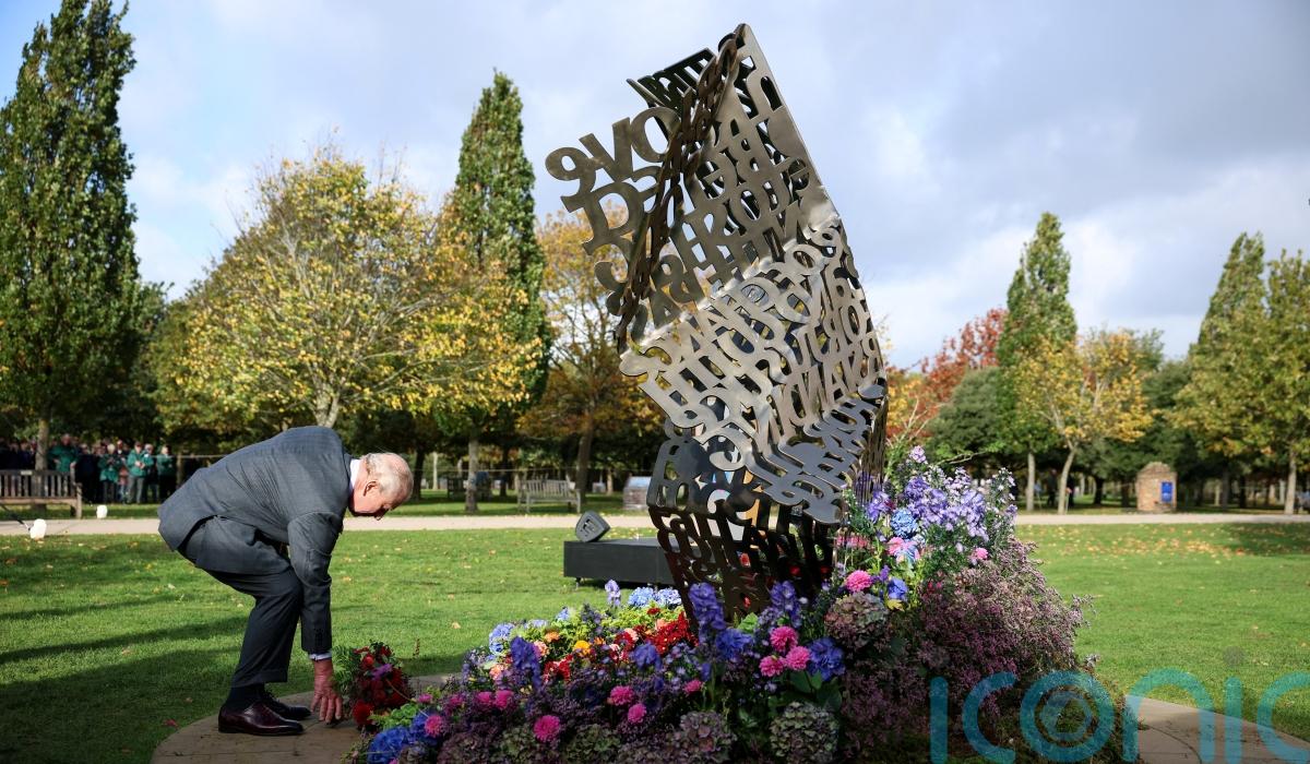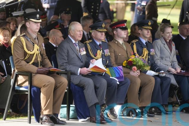 The King has laid flowers at the UK’s first national memorial commemorating LGBT armed forces and met veterans who spoke of the trauma inflicted by the military’s former “gay ban”.