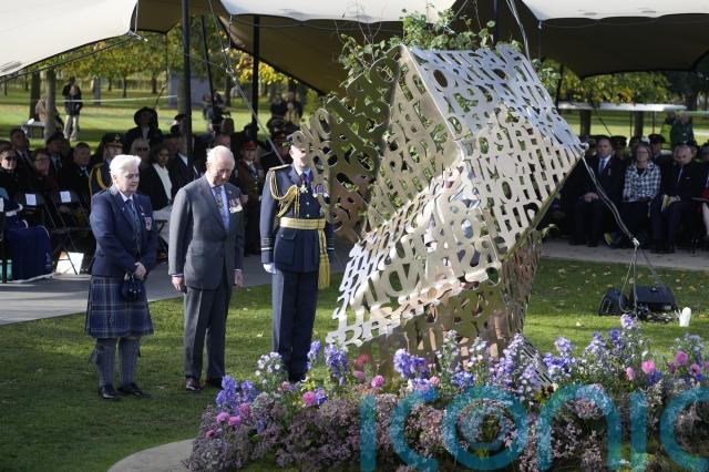 Charles was joined by dozens of serving and former members of the armed forces at the dedication of the memorial, titled An Opened Letter, at the National Memorial Arboretum in Staffordshire on Monday.