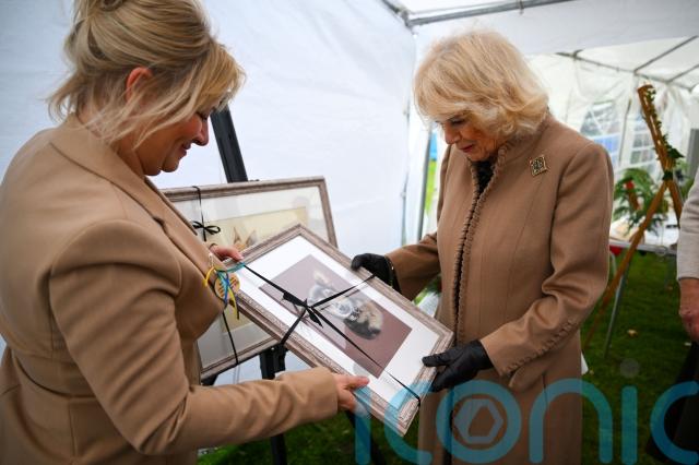 Camilla was delighted to receive a pencil portrait of her beloved rescue dogs Bluebell and Beth – who died last year – and a second picture of her recently adopted puppy Moley, during a visit to the new Bromham Community Hub in Wiltshire.