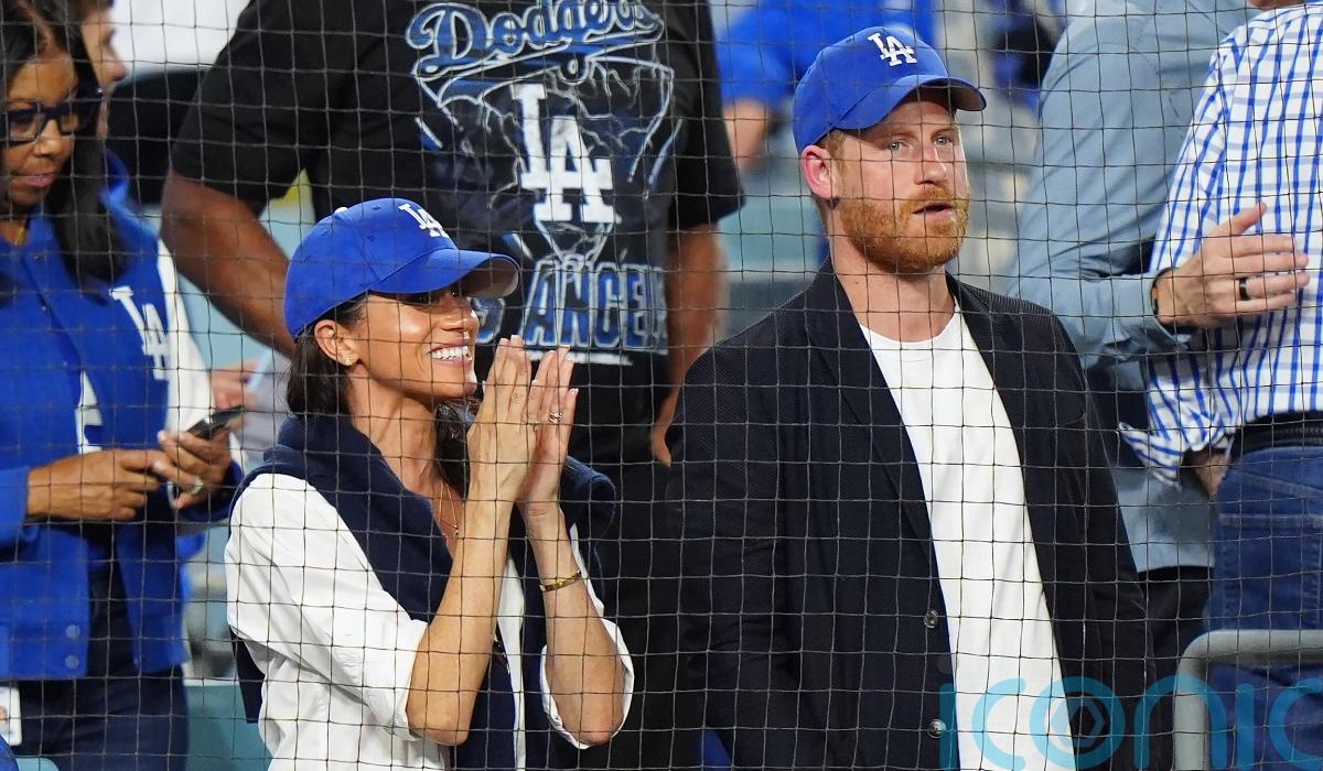 The Duke and Duchess of Sussex sat in front row seats to cheer on the LA Dodgers at game four of baseball’s World Series on Tuesday.