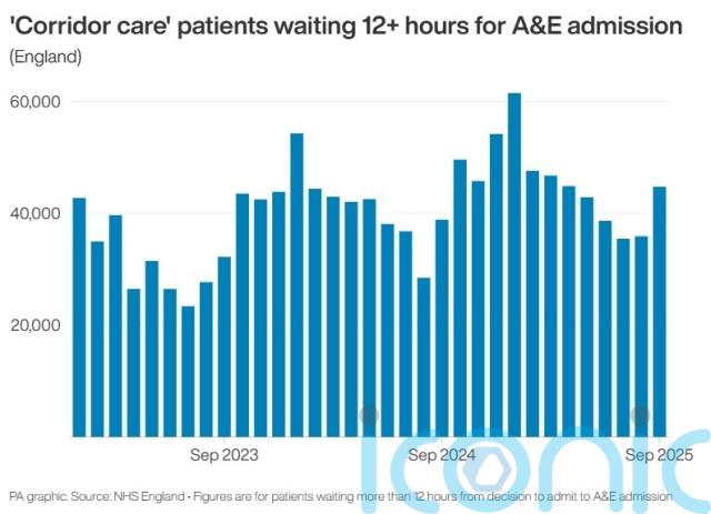 The number of people waiting more than 12 hours in A&E departments in England from a decision to admit to actually being admitted – so-called “corridor care” – stood at 44,765 in September, up from 35,909 in August.