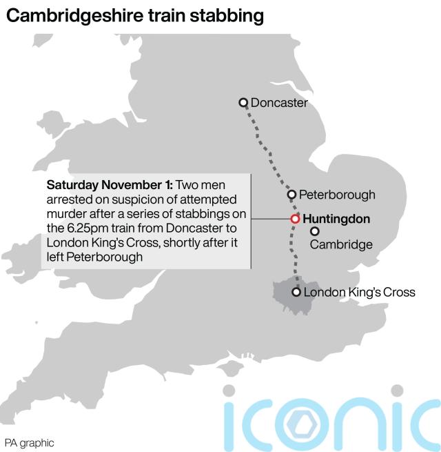 A 32-year-old black British national remains in custody on suspicion of attempted murder. He is from Peterborough and boarded the train there when it stopped at 7.30pm, officers said.