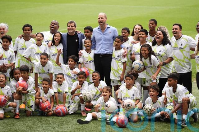 William was joined by former Brazilian star Cafu for his trip to the sporting arena, where they met children learning about the environment and climate change through the sport-based organisation Terra FC.