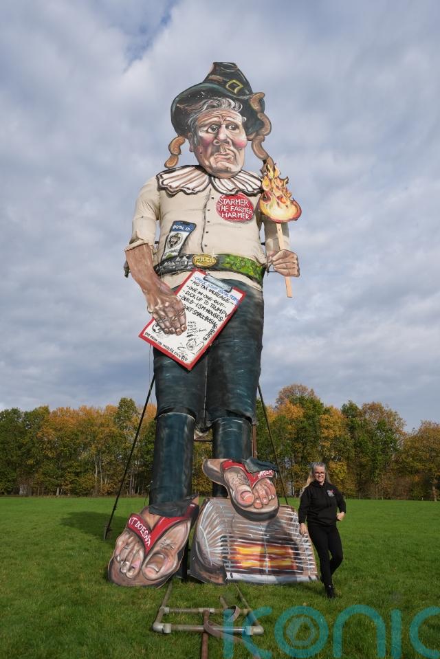 A giant effigy of Sir Keir Starmer has been revealed wearing a “farmer harmer” badge for a Kent town’s Bonfire Night celebrations.