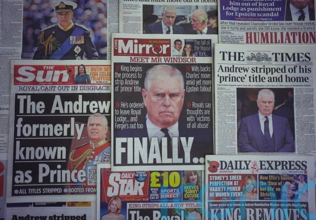 The King has officially stripped his disgraced brother Andrew Mountbatten Windsor of both his HRH style and his prince title.