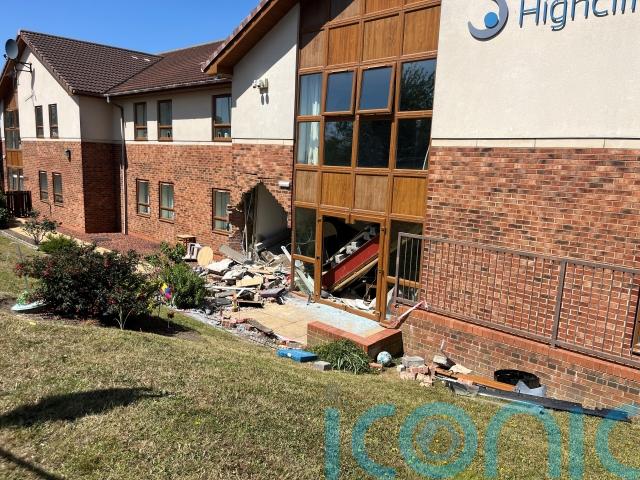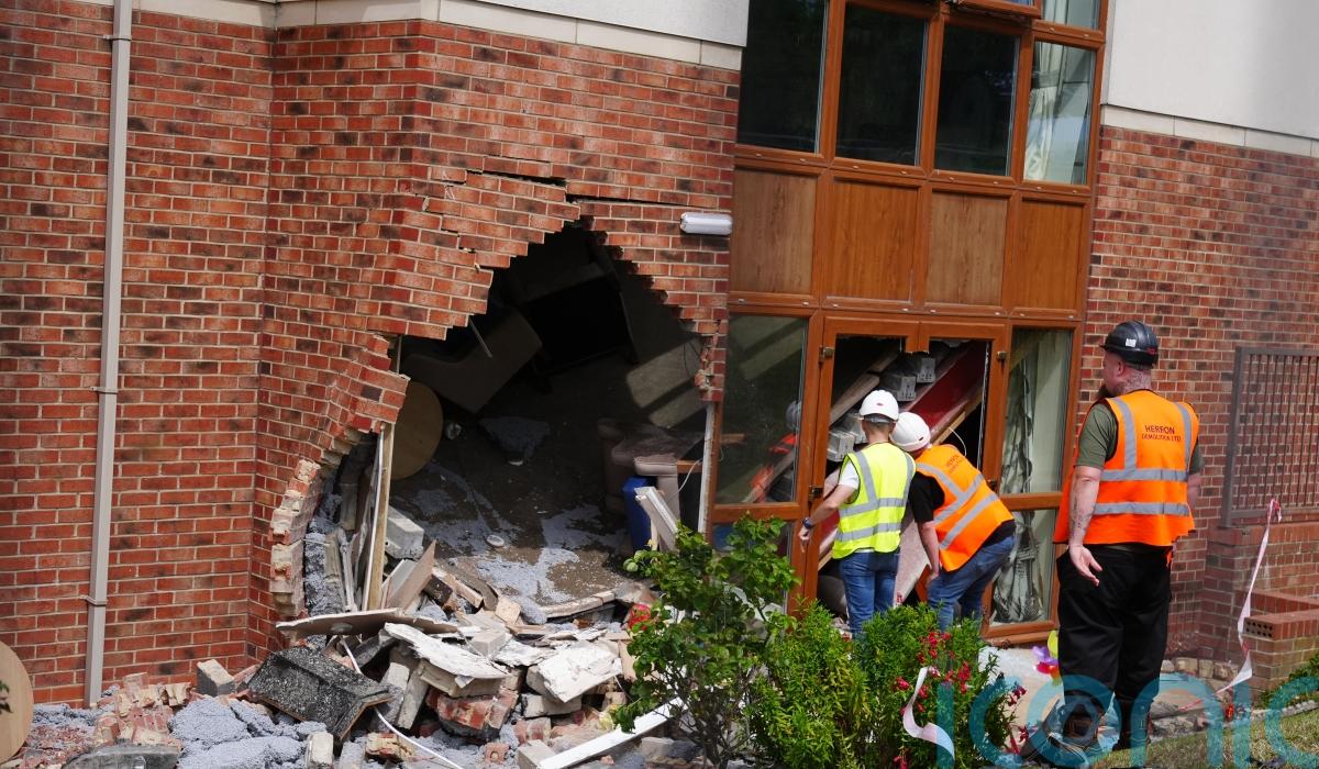 It ultimately hit an exterior wall of Highcliffe Care Home, causing the ceiling to collapse.